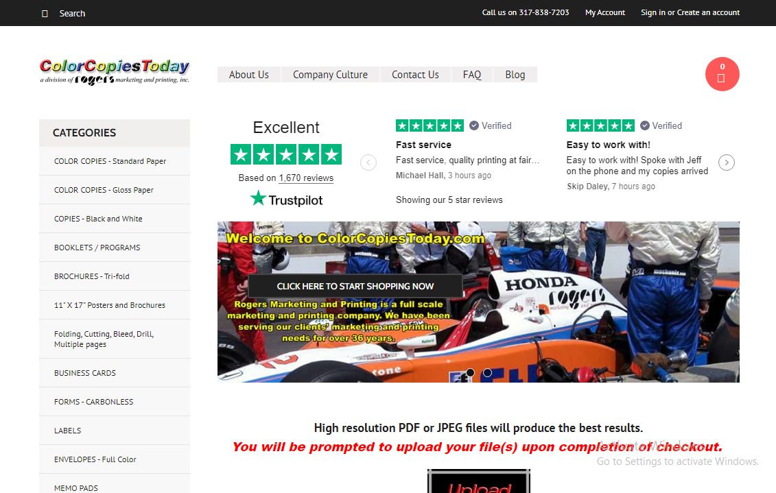 Excellent customer service. Brochures made to my specifications are crisp and shipped quickly. Perfect! From now on, your my print shop. We appreciate your patience and making this process enjoyable.