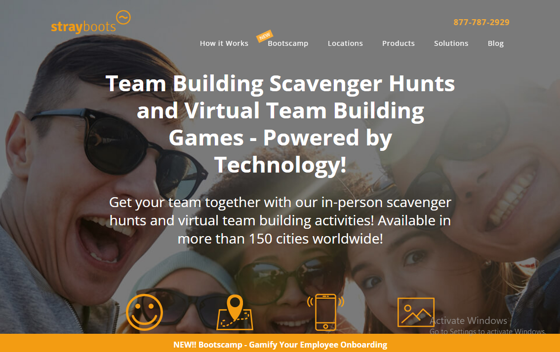 Strayboots provides Interactive Solutions for Team Building, Employee Engagement, and Corporate Orientation Days. With unique mobile scavenger hunts and custom team building activities, your group is sure to have a blast! Sit back and enjoy the fun — plain and simple.