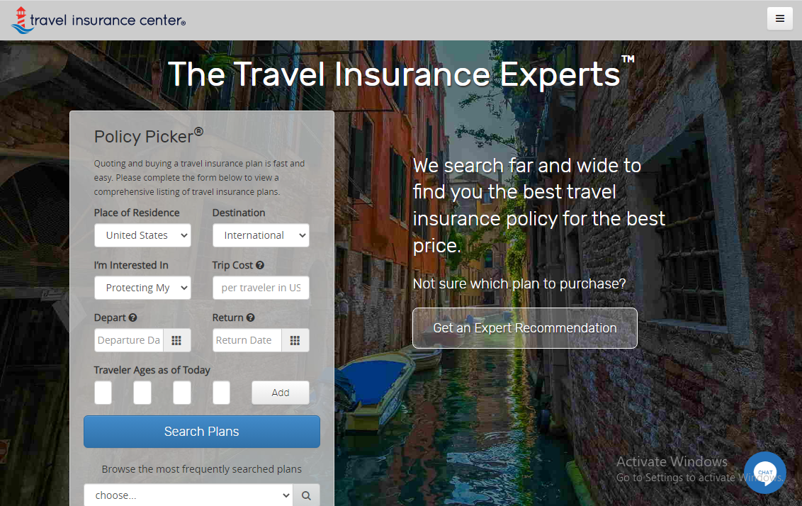 Travel Insurance Center® is a travel insurance aggregator for consumers to compare, shop for and buy travel insurance through its online Policy Picker® tool or with the help of licensed travel insurance agents over the phone. We are dedicated to helping travelers find the coverage they need to travel safe and protected, whether for a business trip or a dream vacation. As an aggregator, Travel Insurance Center offers a variety of plans from the industry’s top providers to protect travelers from unexpected troubles such as medical emergencies, lost or stolen luggage, natural disasters, emergency evacuation, cancelled flights and accidents.