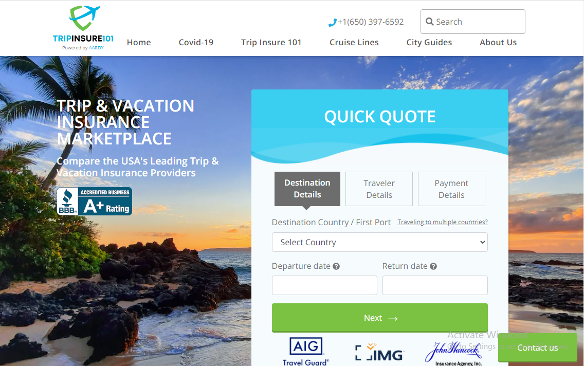 After reading horror stories about trips that ended badly, I decided to get a policy that was primarily focused on the evacuation and medical benefits. Tripinsure 101 was recommended by AARP, so I called them to check if they have insurance. I completed the form, which was very brief, to receive a quote. Chase R confirmed my choice and I purchased my policy. It was very easy.