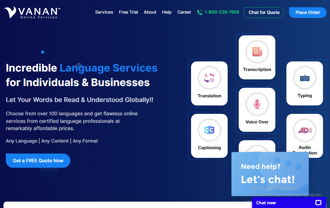 At Vanan, we work together as a large team with a single dream of providing wholesome services to every single customer. Our services include translation, transcription, captioning, subtitling, voice over, video production, video editing, video animation, video spokesperson, medical billing and typing.